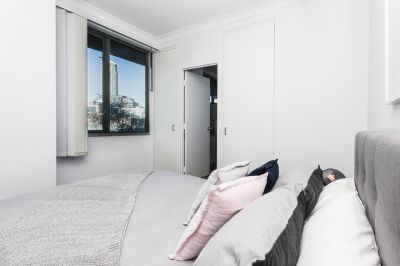 Just moments to the city, with views of lush green outlook, this fully furnished one bedroom apartment has an internal laundry, spacious light filled living area and concierge. Enjoying a north western aspect, the beautiful open plan living has double glass sliding doors opening the property up and allowing airflow throughout. The Domain building offers concierge, gym and spa