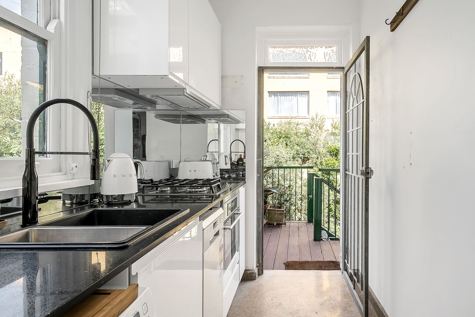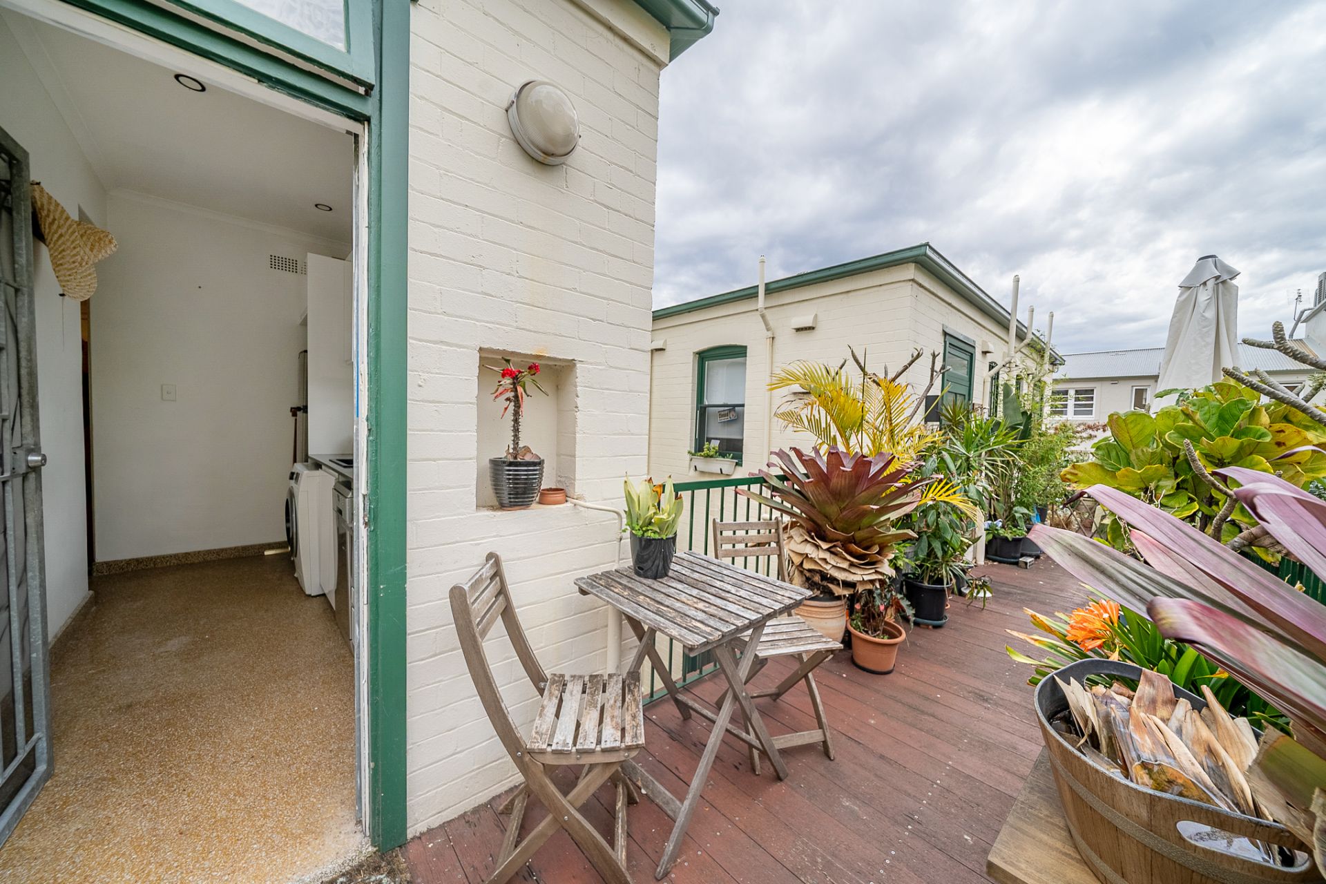 • Balcony/deck off kitchen with leafy mini garden