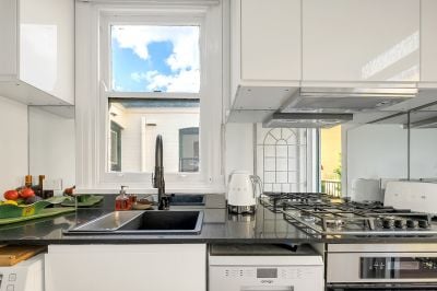 Light-filled and airy throughout, the home blends period charm with thoughtful modern upgrades. The master bedroom offers floor-to-ceiling windows with postcard-worthy views, while the second bedroom - complete with an original fireplace - provides versatility as a guest room or creative retreat.